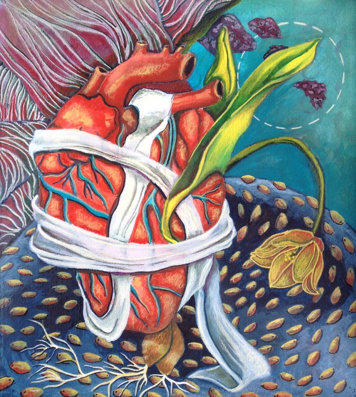 Watercolor, ink, pastel, colored pencil on paper