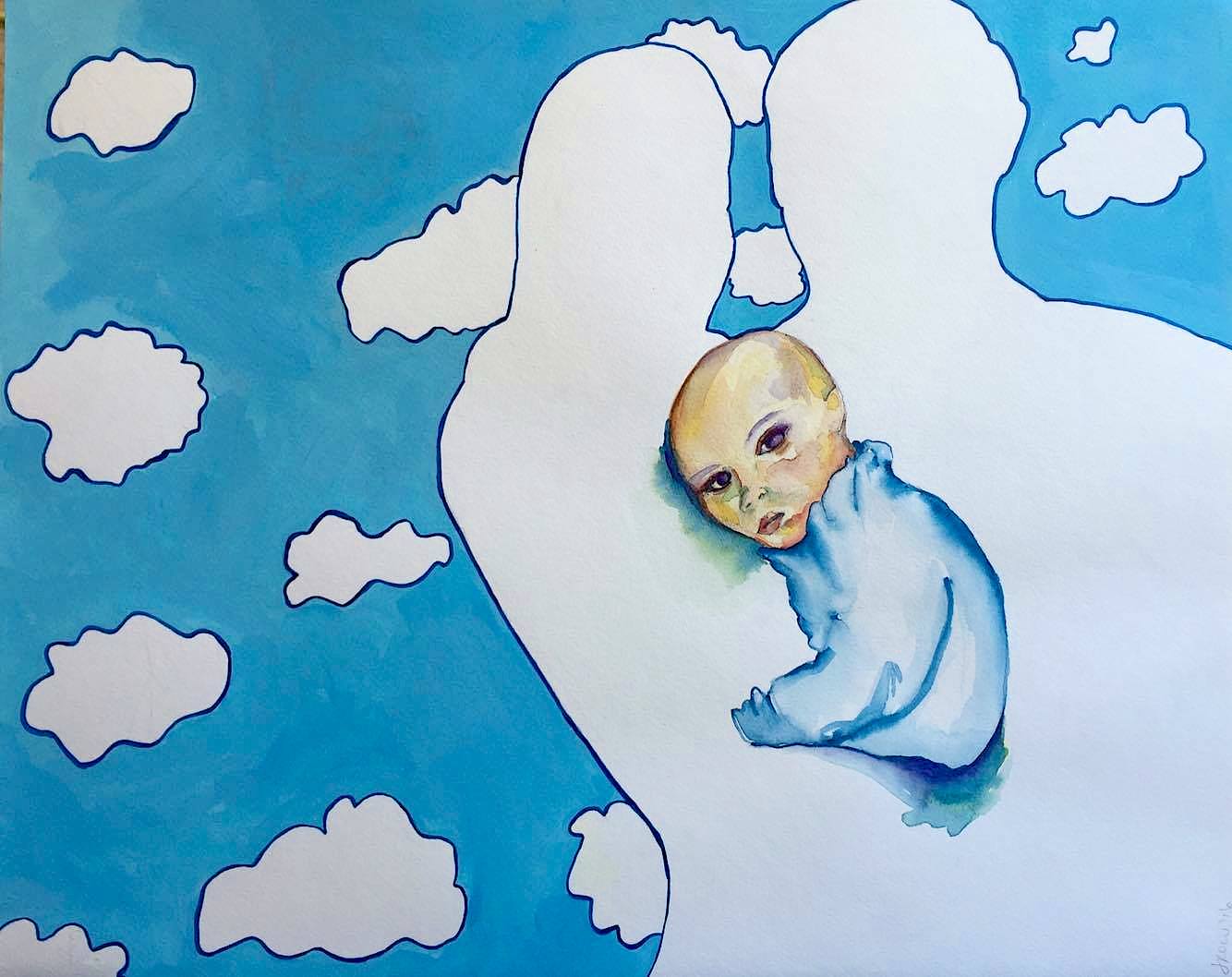 Mixed media: watercolor, acrylic