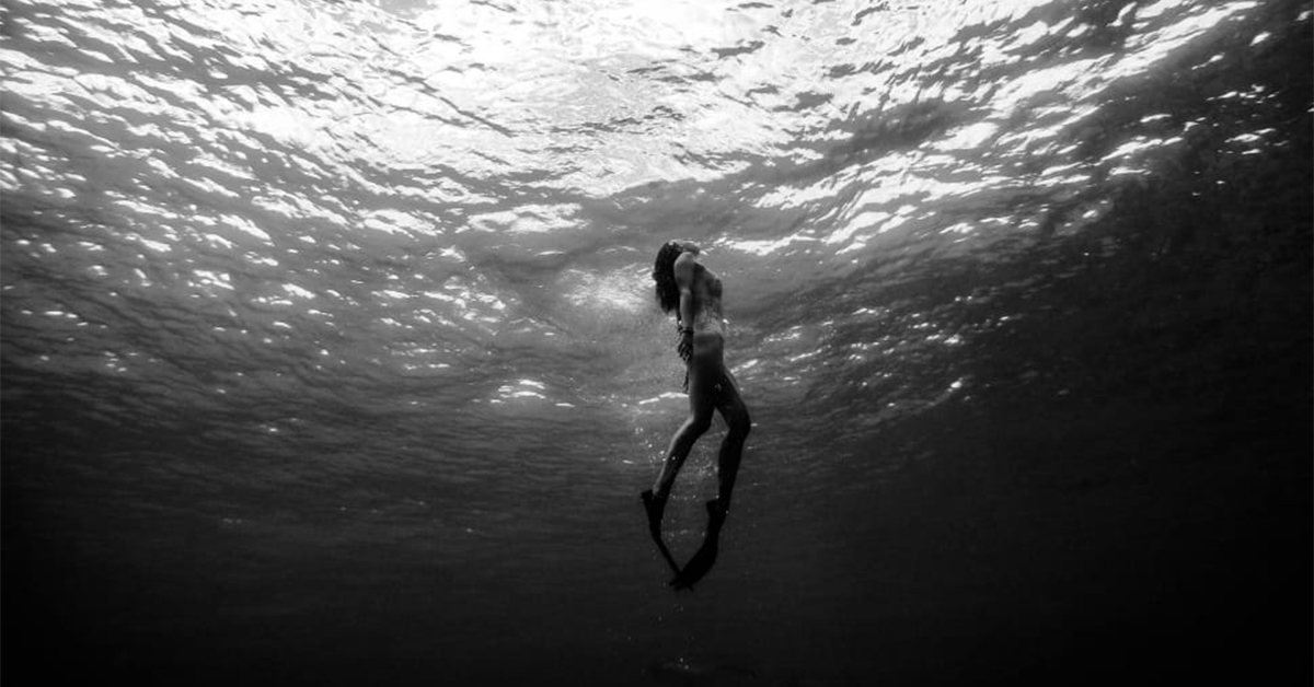 All her years of ocean swimming, and she had only ever fixated on the potential for dangerous encounters with sea life. There! The shadow that moved just below the line where the fingers of the sun reached down like a sieve, exposing everything except the finest grains. It could be a shark fin or the whip of an eel tail, whistling at a frequency she couldn’t hear. A puffer fish, spooked into a defensive pose by her passing, or a seal, which she had heard where actually quite mean. Now she could add body parts to the list.
